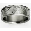 Titanium ring featuring bears, mountains, a river, cabin, and trees.